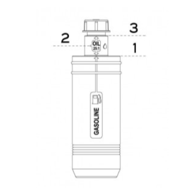 - Vierta aceite hasta el punto 3 para obtener el porcentaje 4% - 25:1.